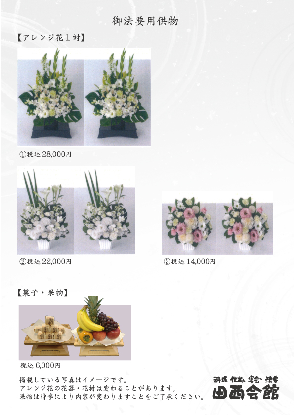 ※神道や天理教など供物類が変わりますので、その際はご相談ください