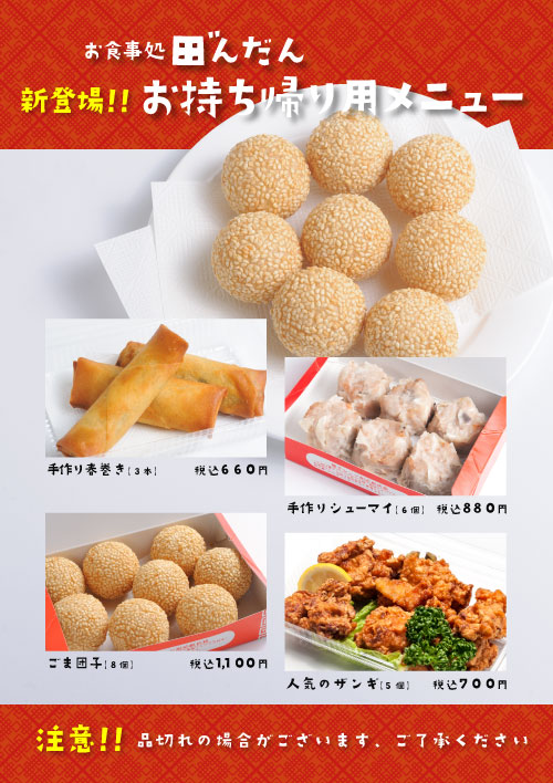 お手数ですが、テイクアウトをご利用くださいますようお願いいたします。