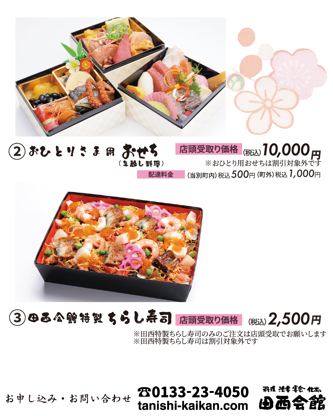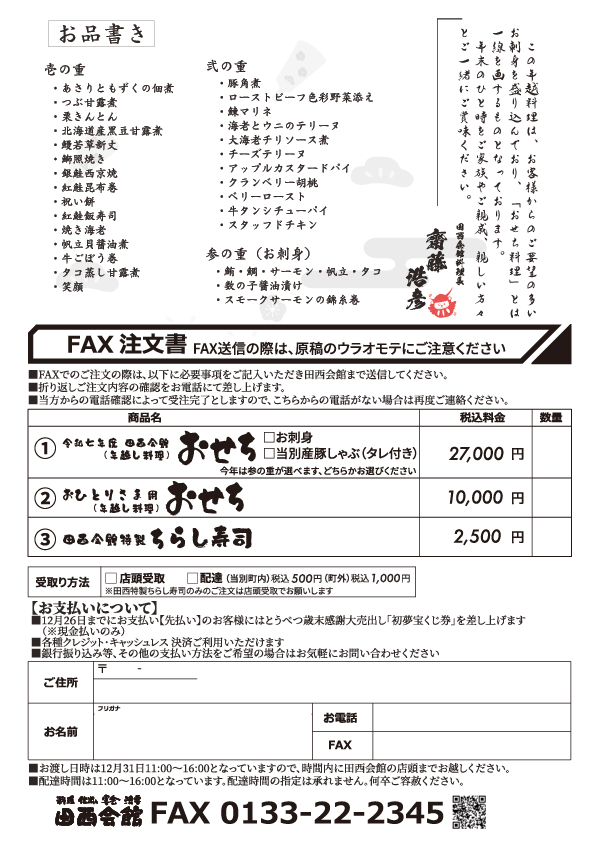 ※ちらし寿司のみのご注文の場合は「配達」できませんので、「店頭受取り」でお願いします