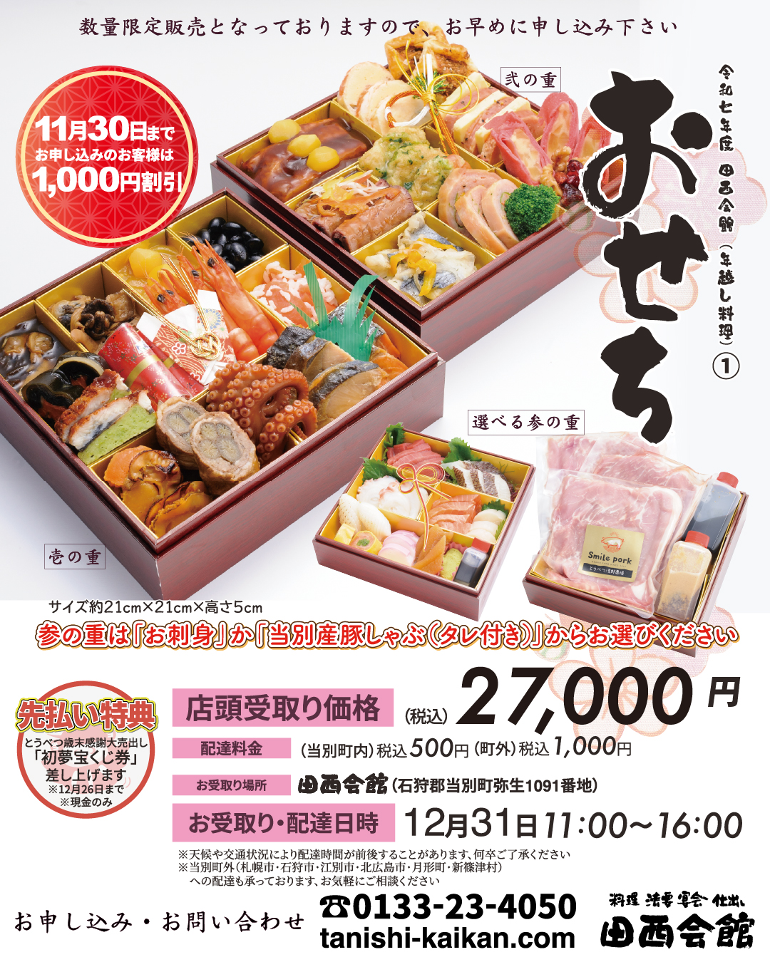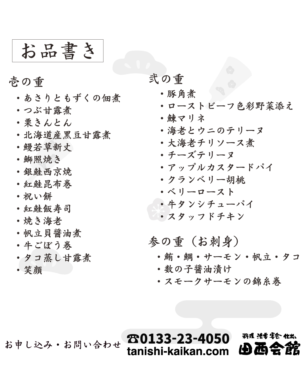 今年は参の重を「お刺身」と「豚しゃぶ(タレ付き)」から選べます!!